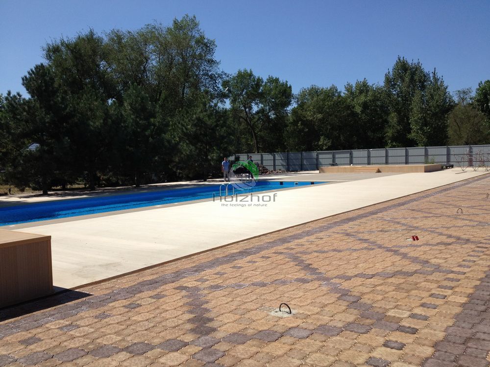 Выполнены работы по монтажу декинга из ДПК в г. Ростове-на-Дону. Общий объем работ составил более 1500 кв.м. Все работы выполнены бригадой наших монтажников. Интересным моментом в данном проекте было изготовление нескольких видов оснований для подконструкции. Тут применялись и винтовые сваи и регулируемые опоры и бетонная стяжка.